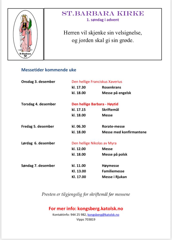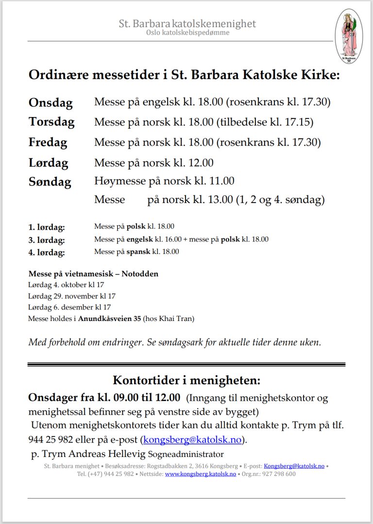 Velkommen til St Barbara katolske kirke, Kongsberg.