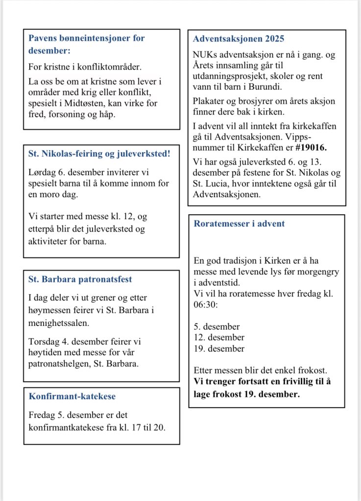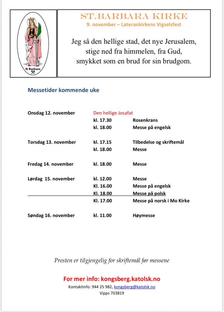 Mer oppdater informasjon om hendelser/messetider, med dato/klokkeslett under: