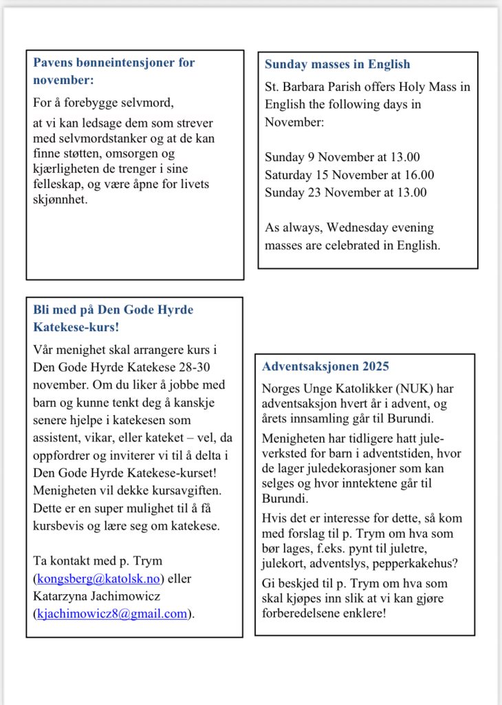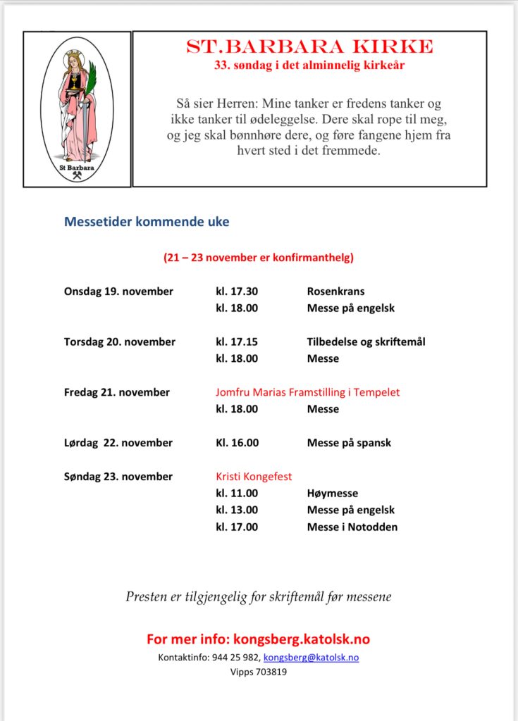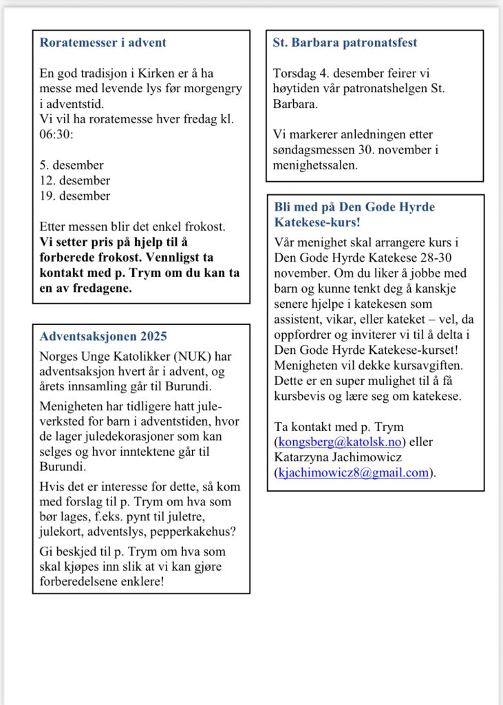 Menighetens patronatfest for St Barbara søndag 30.11.25, etter Høymesse Torsdag 4, desember blir det markering av St Barbara, (pÃ¥ selve festdagen), i messen kl 18.00 Velkommen til Ã¥ feire vÃ¥r […]