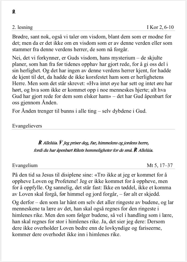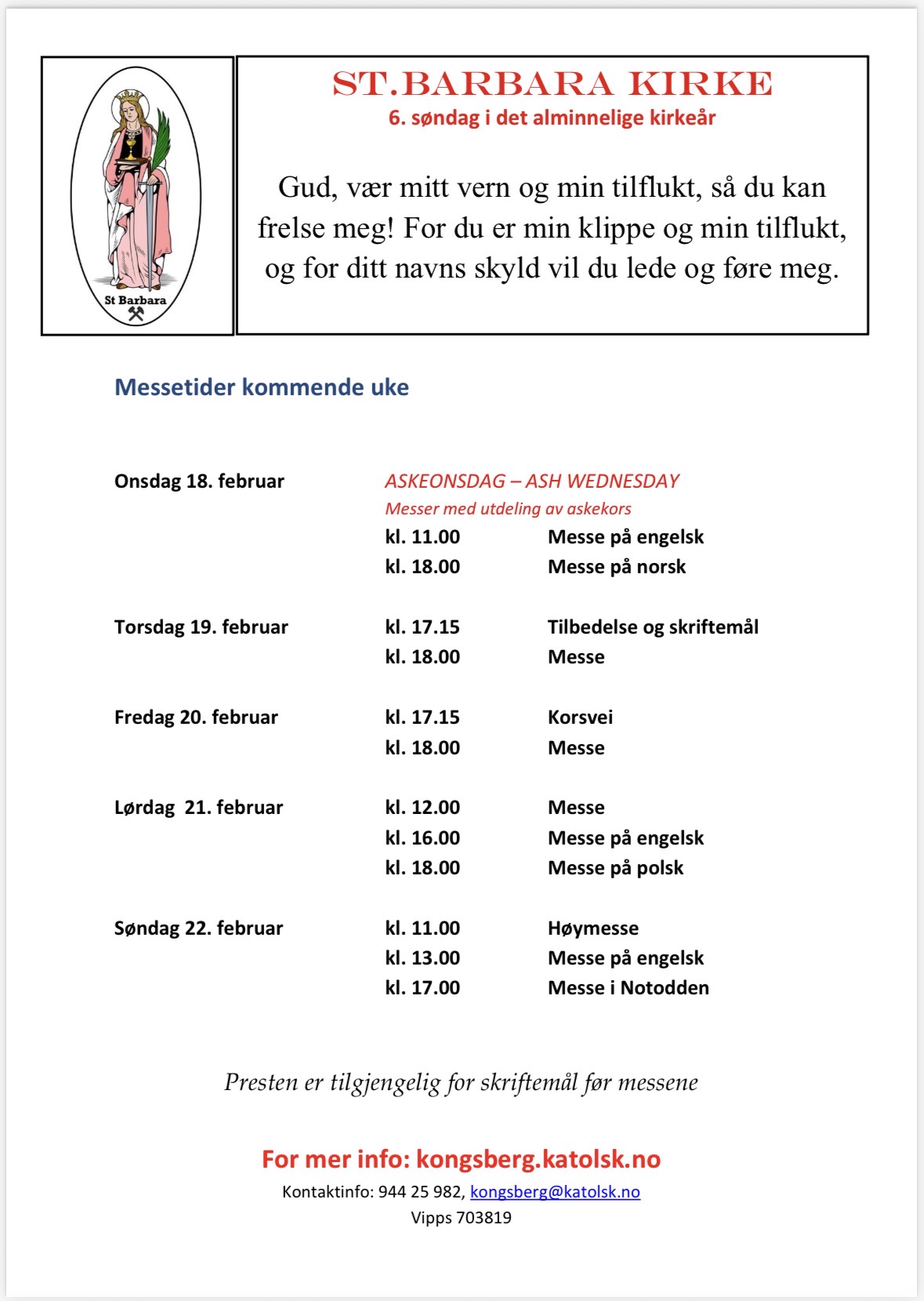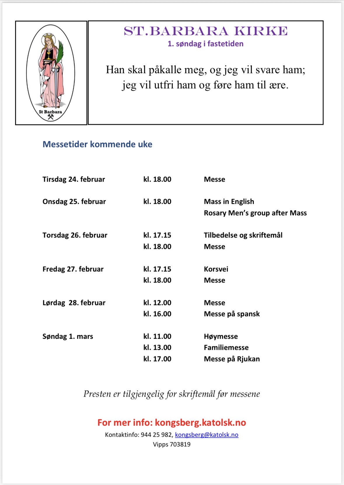 Dvs Messetider som står i Søndagsbladet/messeoversikten er de som gjelder for førstkommende lørdag.