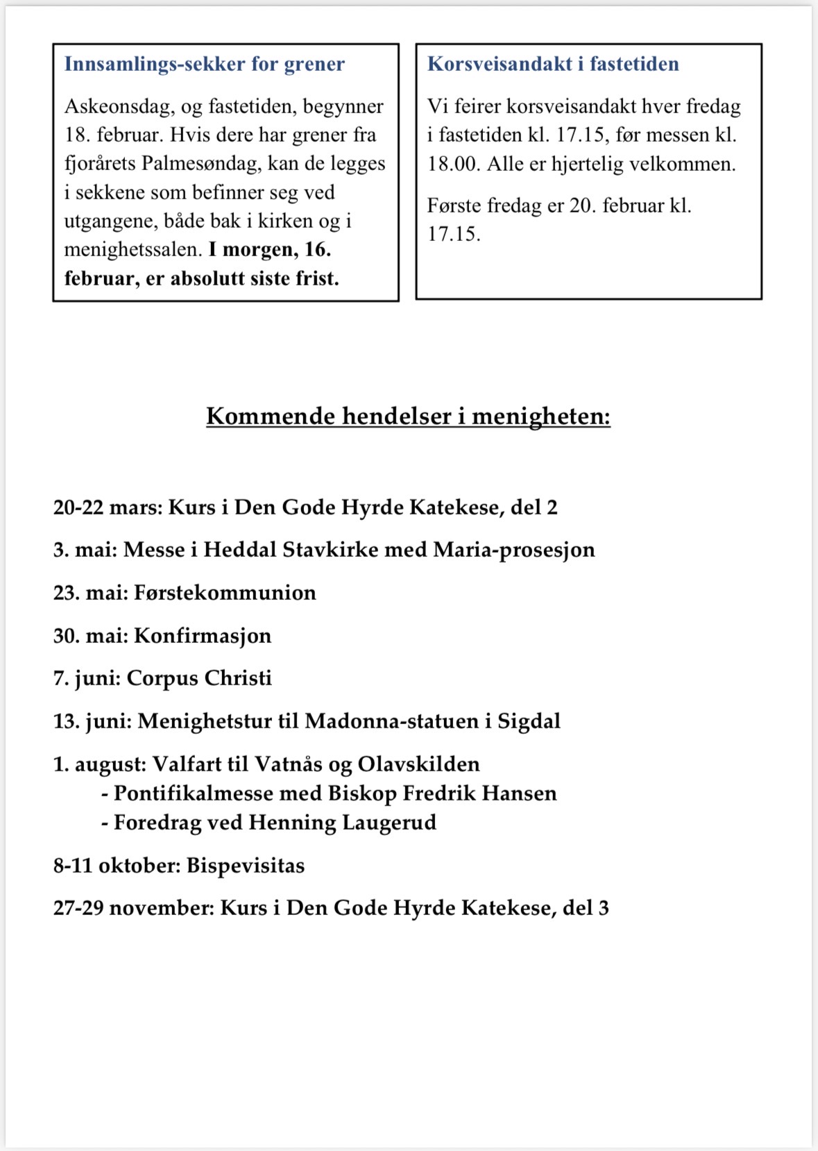 Tidligere melding om messeendring for førstkommende lørdag. For polsk og filippinsk messe. Gjelder ikke, før mars.