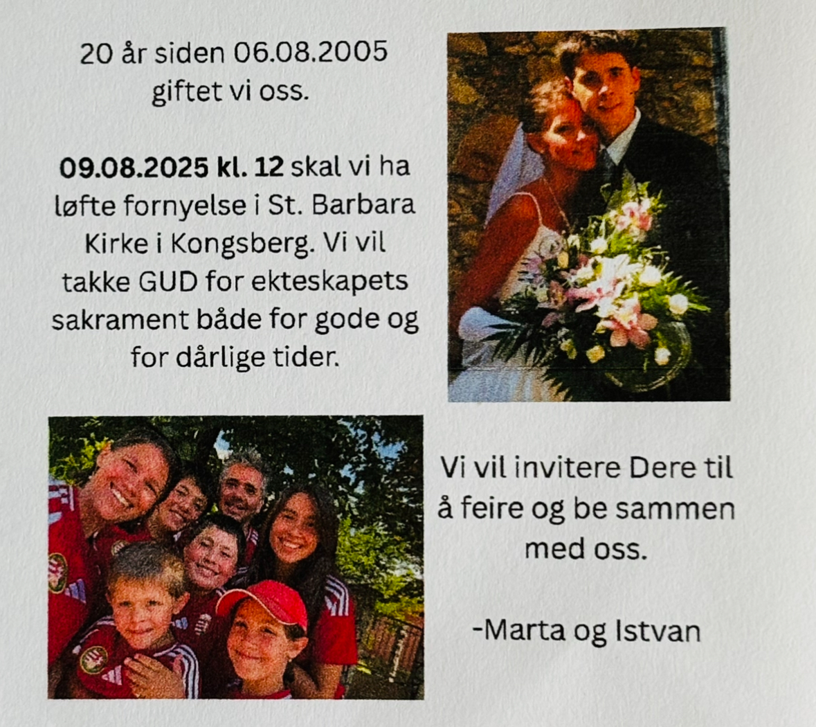Gratulerer til Louise og Jardar.Der Jardar ble døpt, og begge mottok fermingens sakrament og sin første kommunion.Begge er nÃ¥ tatt opp i kirkens fulle fellesskap, under søndagens høymesse 15.6.25 Vi ønsker…